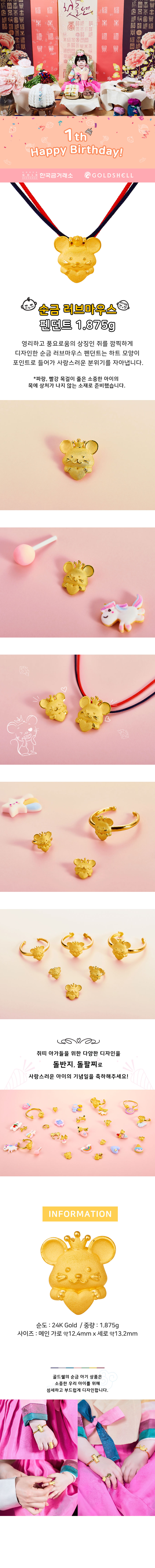 순금 러브마우스 펜던트 1.875g