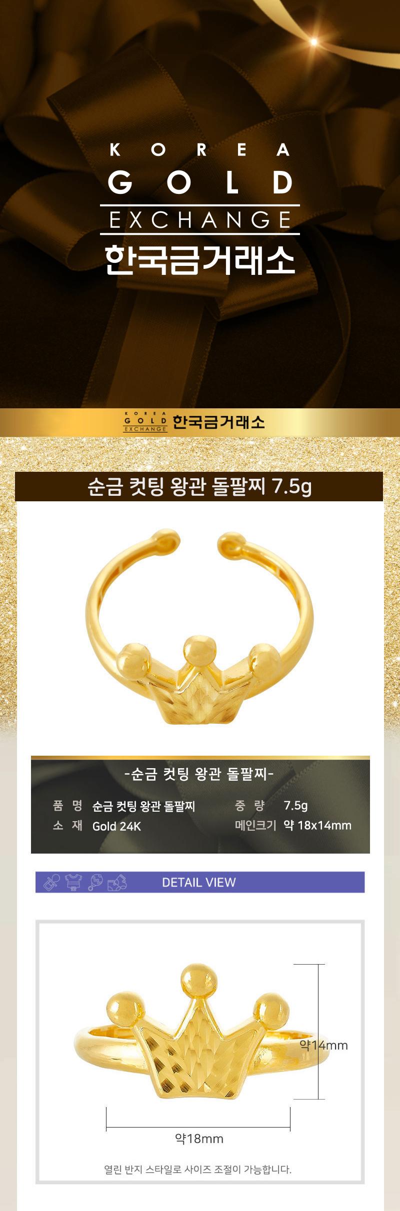 순금 컷팅 왕관 돌팔찌 7.5g